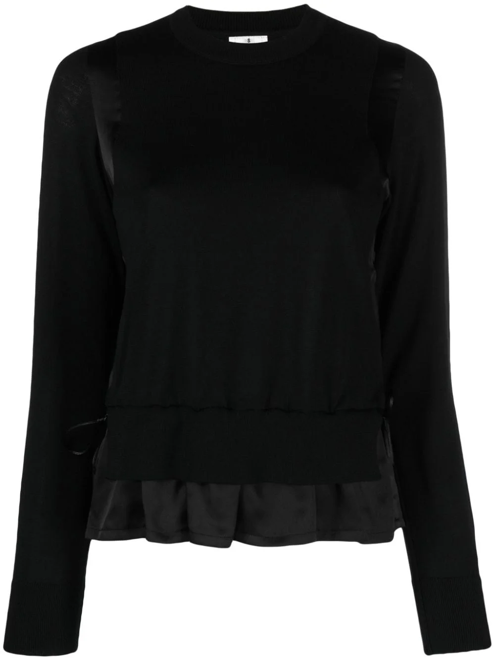 layered wool jumper Highlights - Black - Wool/silk - Layered design - Contrasting trims - Crew neck - Long sleeves - Ribbed cuffs - Ribbed trim - Flared hem Imported Composition Wool 100%, Silk 100% Washing instructions Dry Clean Only