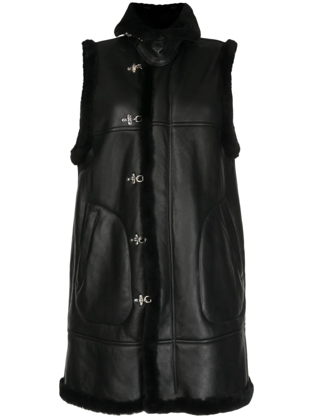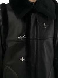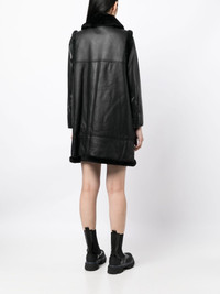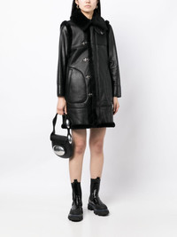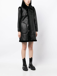 long-length leather coat Highlights - Black - Sheepskin - Slip pockets to the sides - Hook fastening - Shearling collar - Detachable sleeves - Long length - Straight hem Imported Composition Body: Sheepskin 100% Horse Leather 100% SIZE & FIT Model measurements Height 5 ft 10 in(1.77 m) Bust/Chest 28.74 in(73 cm) Hips 35.82 in(91 cm) Waist 24.4 in(62 cm) FittingInformation Designed to be unstructured, offering a loose fit throughout Soft leather has a supple and smooth construction offering some flexibility This piece fits true to size – take your usual size Washing instructions Dry Clean Only
