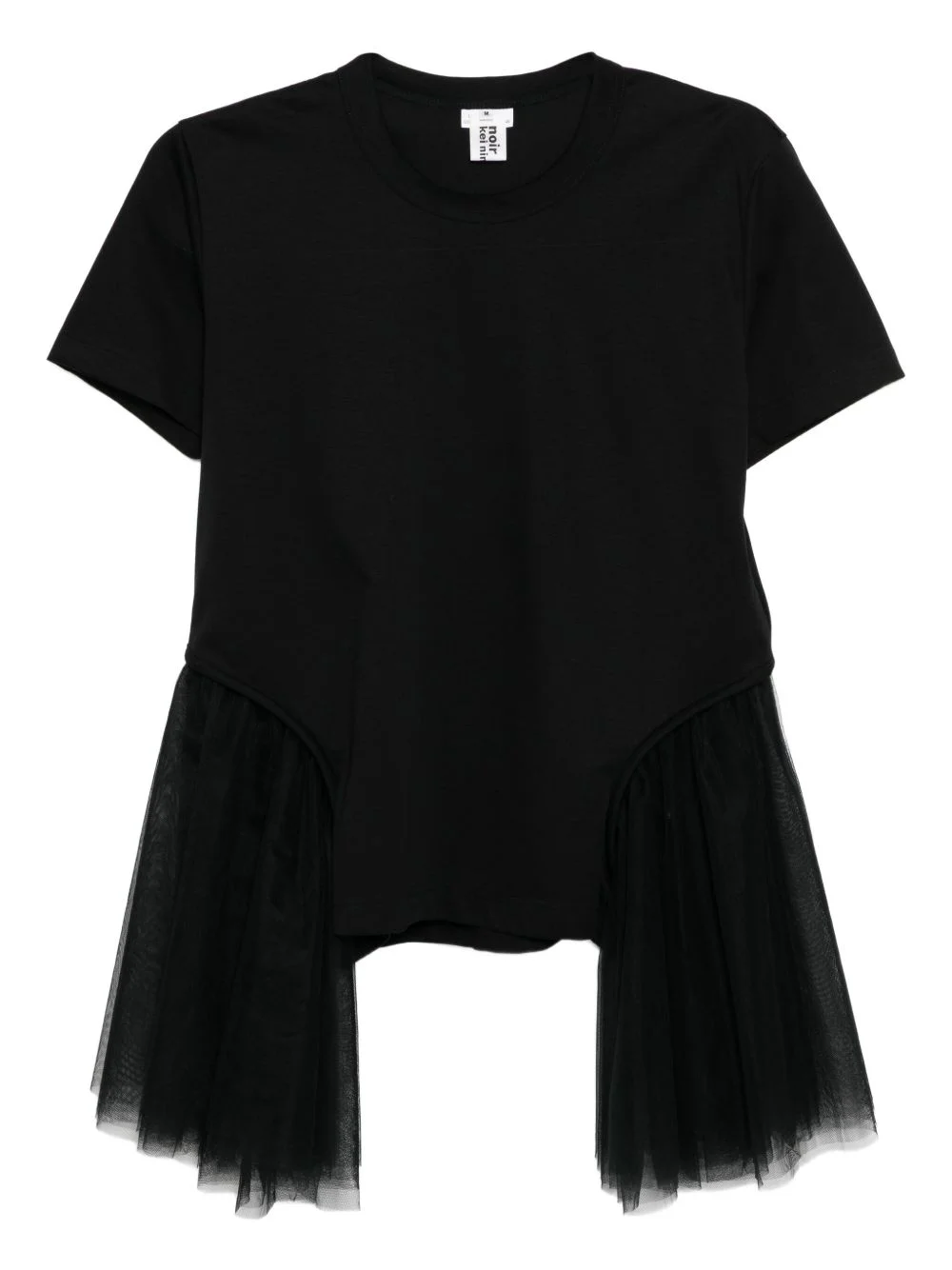 tulle-sleeved T-shirt Highlights - Black - Round neck - Tulle applique at side seams - Straight hem Imported Composition Cotton 100% SIZE & FIT Model measurements Height 5 ft 9 in(1.76 m) Bust/Chest 32.28 in(82 cm) Hips 35.82 in(91 cm) Waist 25.59 in(65 cm) FittingInformation Designed to be unstructured, offering a loose fit throughout Made from a midweight non-stretch fabric, this piece offers minimal elasticity when worn Washing instructions Hand Wash