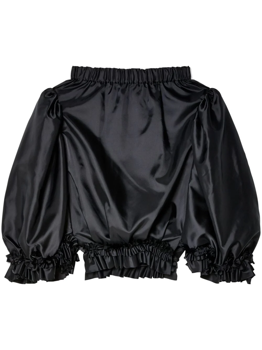 off-shoulder satin blouse Highlights - Black - Satin finish - Off-shoulder - Long sleeves - Elasticated cuffs - Elasticated hem Imported Composition Polyester 100%