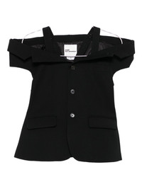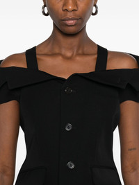 off-the-shoulder fitted jacket Highlights - Black - Off-the-shoulder neck - Button fastening - Flap pockets Imported Composition Fabric 100% SIZE & FIT Model measurements Height 5 ft 10 in(1.78 m) Bust/Chest 31.49 in(80 cm) Hips 37 in(94 cm) Waist 23.62 in(60 cm) Washing instructions Read Manufacturer Guidelines