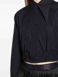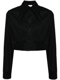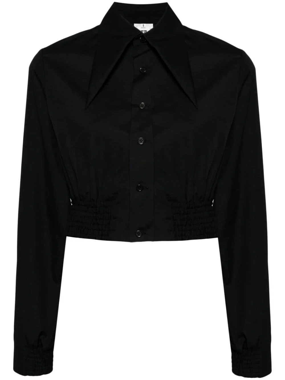 oversized-collar cropped shirt Highlights - Black - Cotton - Poplin texture - Front button fastening - Oversized pointed collar - Long sleeves - Elasticated cuffs - Cropped - Elasticated hem Imported Composition Cotton 100% SIZE & FIT Model measurements Height 5 ft 10 in(1.77 m) Bust/Chest 27.95 in(71 cm) Hips 34.64 in(88 cm) Waist 22.83 in(58 cm) FittingInformation Designed for a slim fit that sits just away from the body offering a close yet comfortable fit Cropped in length Made from a midweight non-stretch fabric