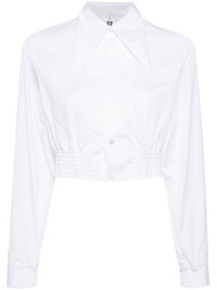 oversized-collar cropped shirt Highlights - White - Cotton - Poplin texture - Front button fastening - Oversized pointed collar - Long sleeves - Elasticated cuffs - Cropped - Elasticated hem Imported Composition Cotton 100% SIZE & FIT Model measurements Height 5 ft 10 in(1.77 m) Bust/Chest 27.95 in(71 cm) Hips 34.64 in(88 cm) Waist 22.83 in(58 cm) FittingInformation Designed for a slim fit that sits just away from the body offering a close yet comfortable fit Cropped in length Made from a midweight non-stretch fabric