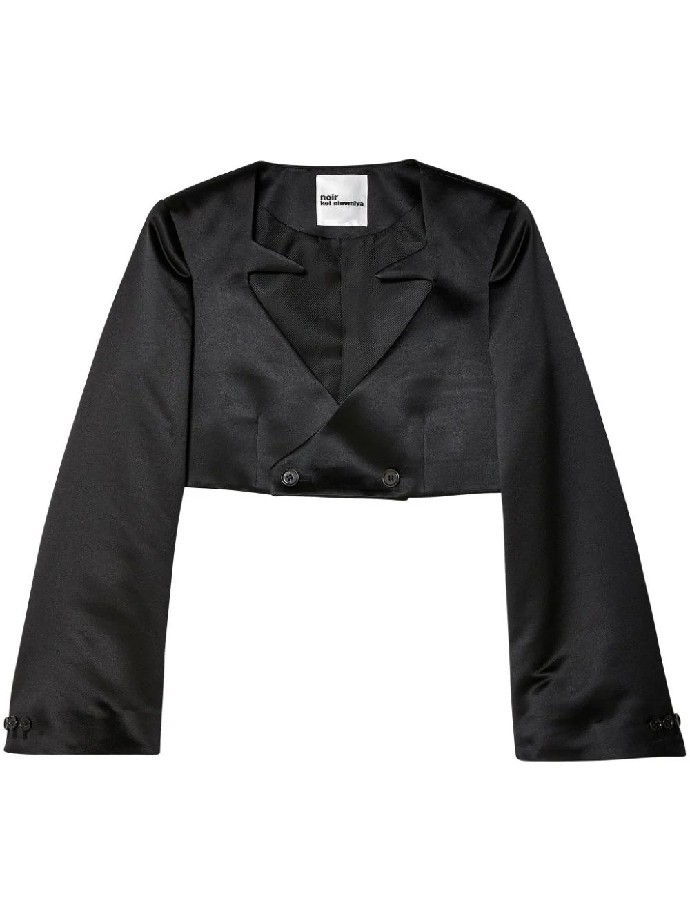double-breasted cropped blazer Highlights - Black - Notched lapels - Double-breasted button fastening - Long sleeves - Buttoned cuffs - Cropped - Straight hem Imported Composition Polyester 100%