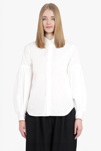 RUCHED BALLOON L/S BLOUSE | WHITE