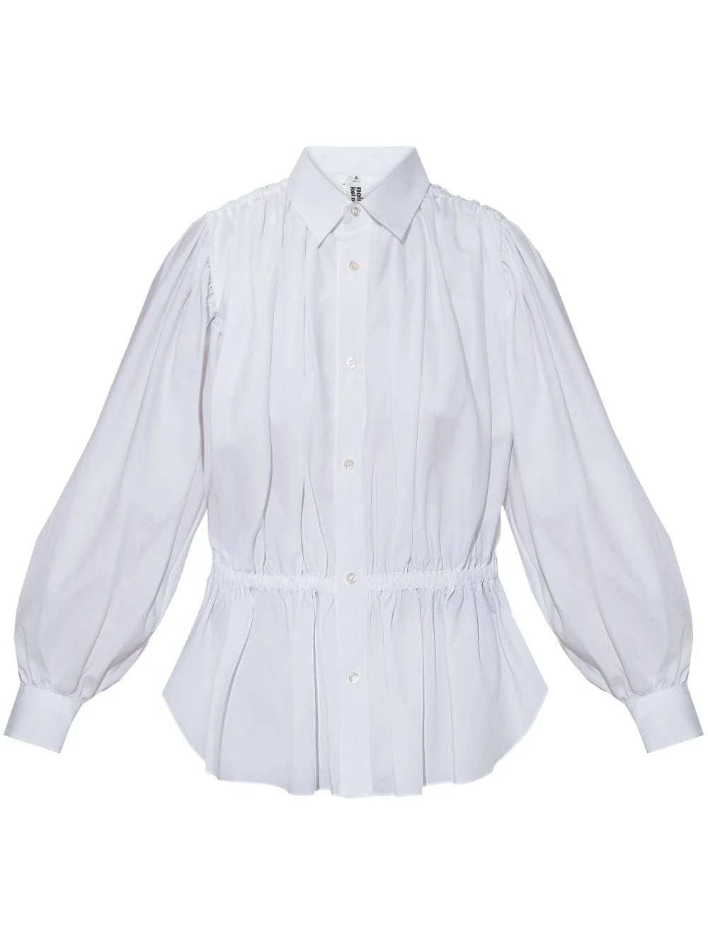 ruched-detail shirt Highlights - White - Cotton - Poplin texture - Front button fastening - Spread collar - Ruched detailing - Long puff sleeves - Buttoned cuffs - Fitted waistline - Flared hem Imported Composition Cotton 100%