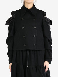 wrinkled jacket Highlights - Black - Wool - Front button fastening - Long sleeves - Straight hem Imported Composition Wool 100%