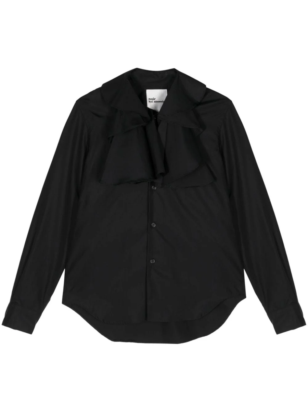 ruffled cotton shirt Highlights - Black - Cotton - Poplin texture - Ruffle collar - Front button fastening - Long sleeves - Buttoned cuffs - Curved hem - High-low hem Imported Composition Cotton 100%