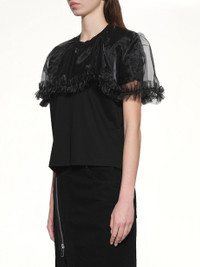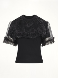 NOIR KEI NINOMIYA's Tulle T-Shirt in Black is a striking piece that combines avant-garde design with everyday wearability. This t-shirt features a unique tulle overlay that adds texture and dimension to any outfit. - Composition: nan - Color: Black - Unique tulle overlay design - Short sleeves - Relaxed fit - Round neckline - Made in: nan Model is 178 cm and wears size S SKU: 3P-T004-051 BK