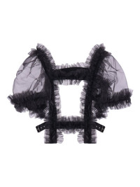 ruffled top Highlights - Black - Ruffle trim - Wool attachments - Buckle fastening Imported Composition Polyester 100%, Wool 100% Washing instructions Read Manufacturer Guidelines