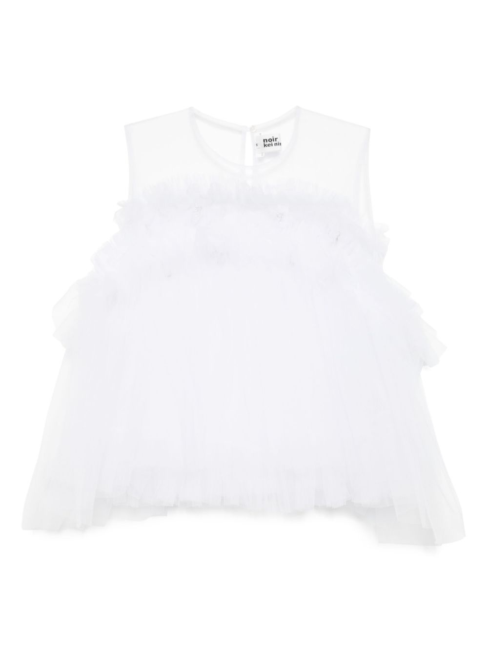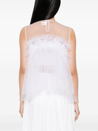 Tulle Ruffle blouse Highlights - White - Clasp fastening - Sleeveless - Rounded collar Imported Composition Nylon 100% SIZE & FIT Model measurements Height 5 ft 10 in(1.77 m) Bust/Chest 30.7 in(78 cm) Hips 35.82 in(91 cm) Waist 21.25 in(54 cm) FittingInformation Designed to be unstructured, offering a loose fit throughout Made from a midweight non-stretch fabric
