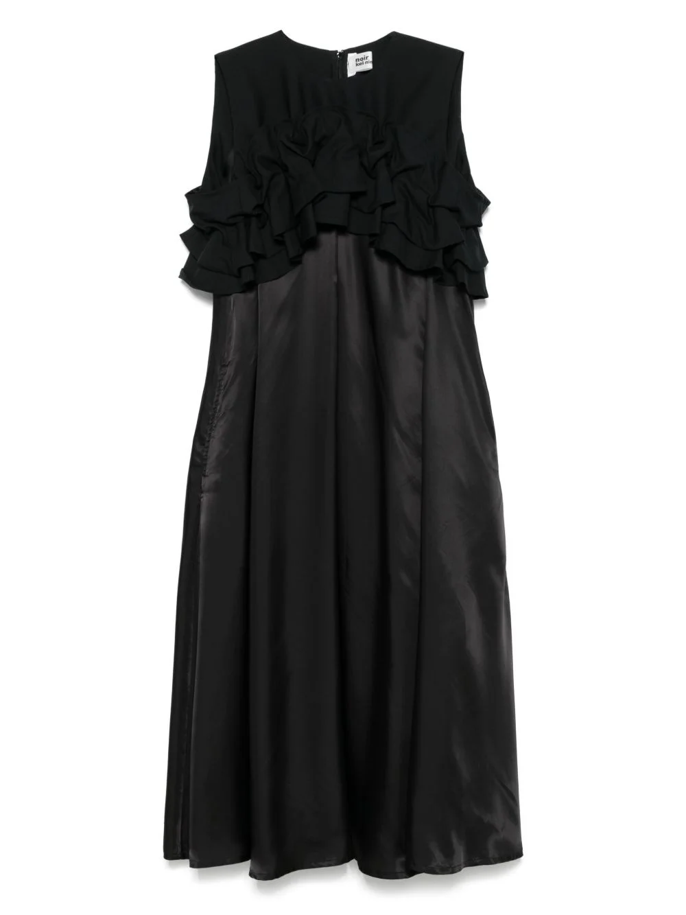 ruffle-detail midi dress Highlights - Black - Concealed rear zip fastening - Round neck - Sleeveless - Straight hem Imported Composition Wool 100%, Cupro 100%