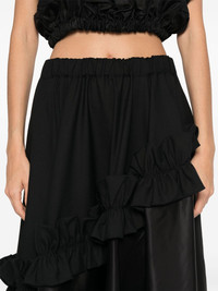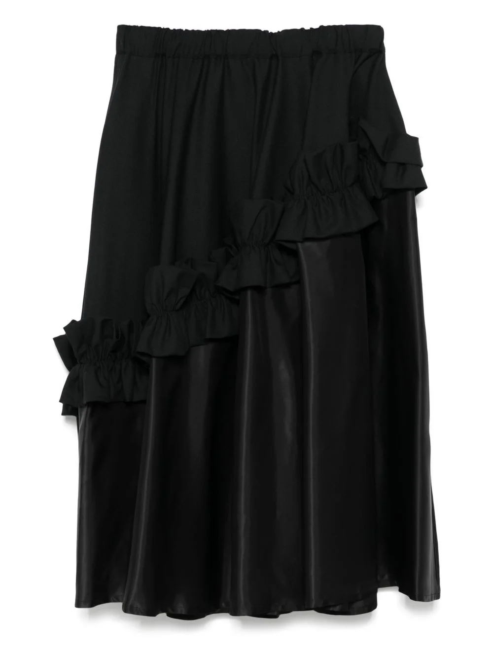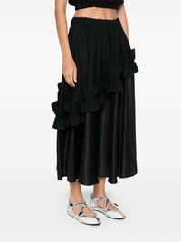 ruffle-detail skirt Highlights - Black - Elasticated waistband - Straight hem - High-waisted - Mid-length Imported Composition Cupro 100%, Wool 100% SIZE & FIT Model measurements Height 5 ft 10 in(1.79 m) Bust/Chest 33.07 in(84 cm) Hips 35.82 in(91 cm) Waist 24.01 in(61 cm) FittingInformation This midi-length skirt is intended to be worn high on the waist The elasticated waist allows for a comfortable fit Made from a midweight non-stretch fabric