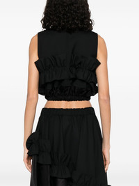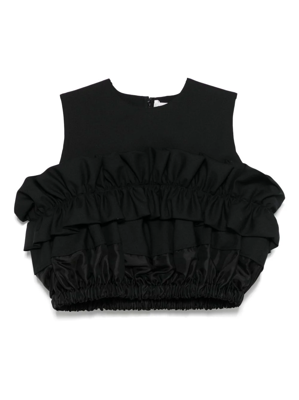 ruffle-detail crop top Highlights - Black - Round neck - Sleeveless - Elasticated hem Imported Composition Cupro 100%, Wool 100% SIZE & FIT Model measurements Height 5 ft 10 in(1.79 m) Bust/Chest 33.07 in(84 cm) Hips 35.82 in(91 cm) Waist 24.01 in(61 cm) FittingInformation Designed for a relaxed fit, this piece allows for comfort and movement when worn The elasticated waist allows for a comfortable fit Made from a midweight non-stretch fabric