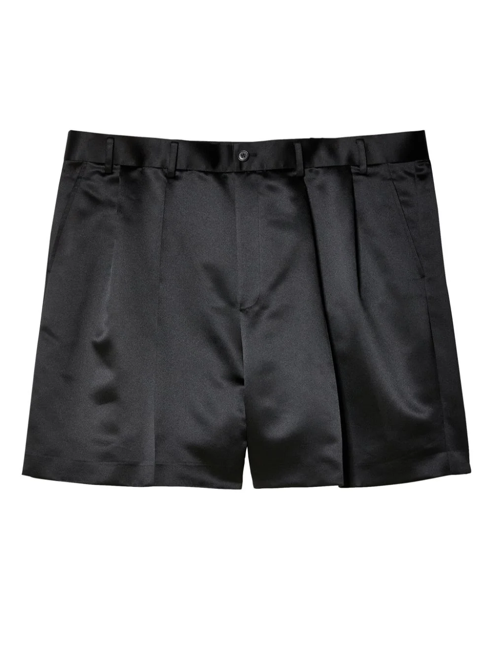 satin tailored shorts Highlights - Black - Satin weave - Tailored cut - Pleat detailing - Belt loops - Front button fastening - Rear welt pocket - Thigh-length Imported Composition Polyester 100%