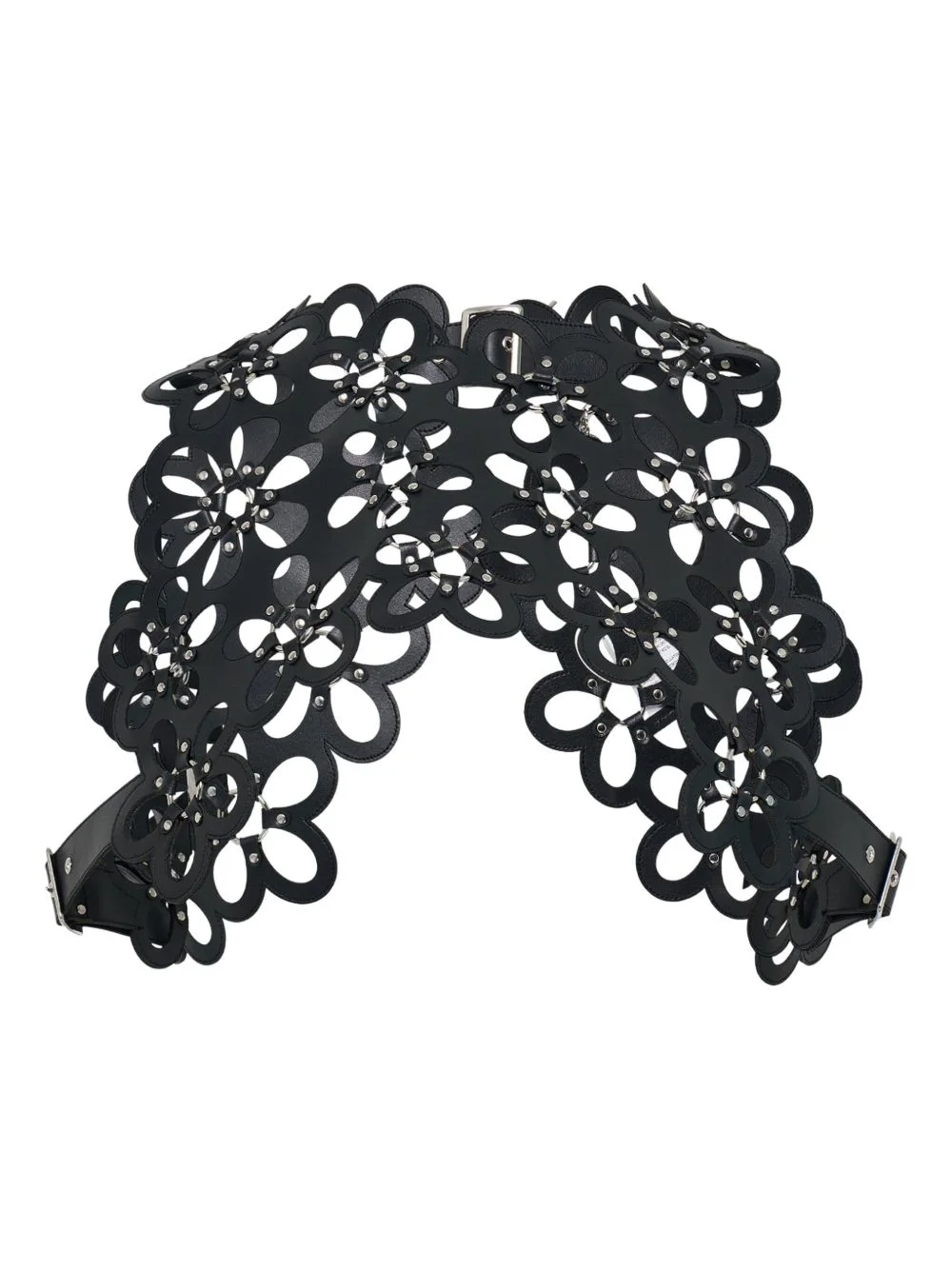 studded cut-out vest Highlights - Black - Floral cut-outs - Studded embellishments - Buckle fastening - Faux-leather construction - Sleeveless Imported Composition Artificial Leather 100% Washing instructions Specialist Cleaning