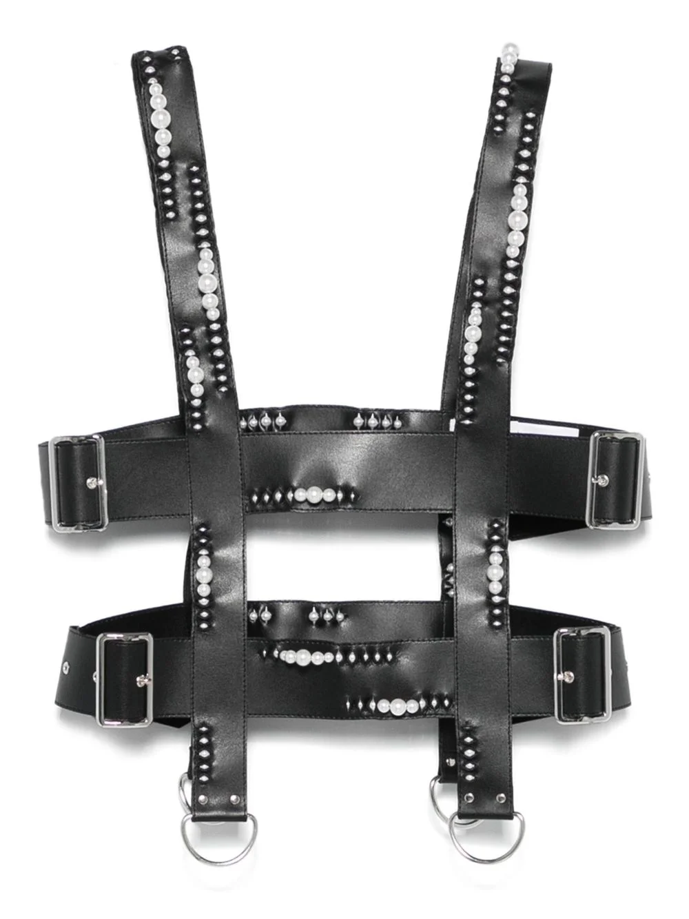 faux-leather harness vest Highlights - Black - Buckle fastening - Pearl detailing - Ring embellishment - Adjustable fit Imported Composition Outer: Polyurethane 100% Lining: Polyester 100% SIZE & FIT Model measurements Height 5 ft 9 in(1.75 m) Bust/Chest 34.64 in(88 cm) Hips 36.61 in(93 cm) Waist 26.37 in(67 cm) FittingInformation Designed for a close fit throughout The belt offers adjustability for fitted preferences Made from a midweight non-stretch fabric Washing instructions Do Not Wash/Do Not Dry Clean