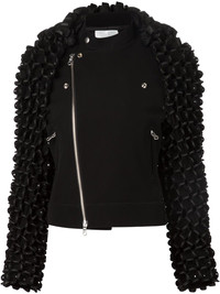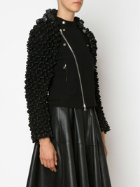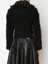 textured sleeves biker jacket Black textured sleeves biker jacket from Comme Des Garcons Noir Kei Ninomiya. Imported Composition Artificial Leather 100%, Polyester 100%, Polyurethane Resin 100% Lining: Cupro 100% SIZE & FIT Model measurements Height 5 ft 11 in(1.81 m) Bust/Chest 33.07 in(84 cm) Hips 33.85 in(86 cm) Waist 24.01 in(61 cm) Washing instructions Specialist Cleaning