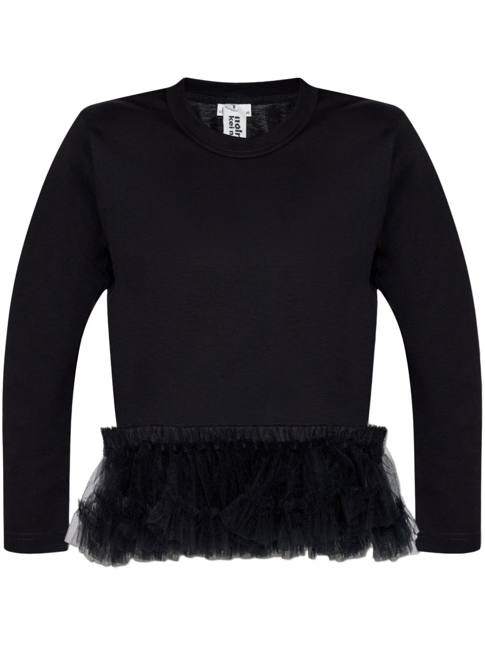 cotton jumper Highlights - Black - Crew neck - Long sleeves - Peplum waist - Tulle trim Imported Composition Cotton 100%