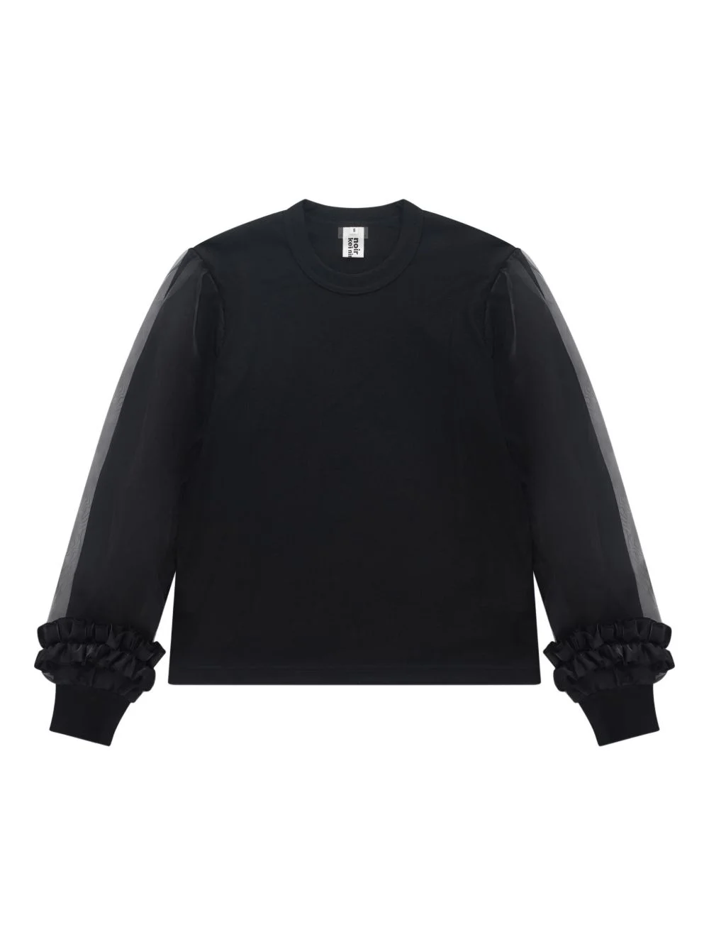 ruffled-sleeve sweatshirt Highlights - Black - Ruffled cuffs - Crew neck - Long sleeves Imported Composition Wool 100%, Polyester 100% Washing instructions Read Manufacturer Guidelines