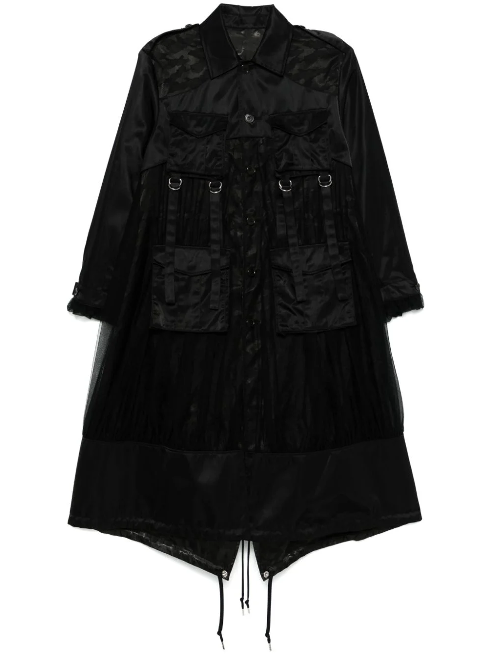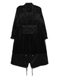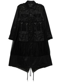 utility coat Highlights - Black - Satin finish - Mesh panelling - Front button fastening - Classic collar - Epaulettes - Long sleeves with button-fastening ruffle cuffs - D-ring strap detailing - Four front flap pockets - Storm flap - Rear patch pocket - Rear slit - Drawstring hem - Mid-length Imported Composition Outer: Nylon 100% Lining: Polyester 100%