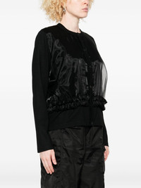 wool cardigan Highlights - Black - Sheer panel - Front button fastening - Long sleeves - Round neck Imported Composition Wool 100%, Polyester 100% SIZE & FIT Model measurements Height 5 ft 9 in(1.75 m) Bust/Chest 34.64 in(88 cm) Hips 36.61 in(93 cm) Waist 26.37 in(67 cm) Washing instructions Read Manufacturer Guidelines