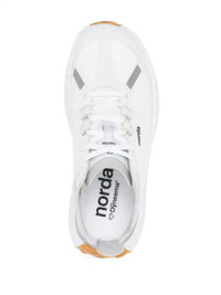 white Bio-Dyneema® upper abrasion resistant panelled design front lace-up fastening logo pull-tab at the heel logo print to the side logo-print tongue reflective detailing round toe branded insole Norda™ midsole Vibram® sole Size & Fit Model Measurements: Bust: 0cm Height: 0cm Hips: 0cm Waist: 0cm Fabric and Care Designer Style ID: NR001W Designer Colour: WHITE/GUM Composition: Other fibres 100%