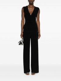 ruched V-neck jumpsuit Highlights - Black - Stretch-design - V-neck - Sleeveless - Ruched detailing - Wide leg - Concealed rear zip fastening Imported Composition Polyester 95%, Spandex/Elastane 5% SIZE & FIT Model measurements Height 5 ft 10 in(1.77 m) Bust/Chest 32.28 in(82 cm) Hips 35.03 in(89 cm) Waist 25.19 in(64 cm) FittingInformation Designed for a close fit throughout Made from a midweight stretch fabric, this piece offers elasticity and flexibility when worn This piece fits true to size – take your usual size Washing instructions Machine Wash