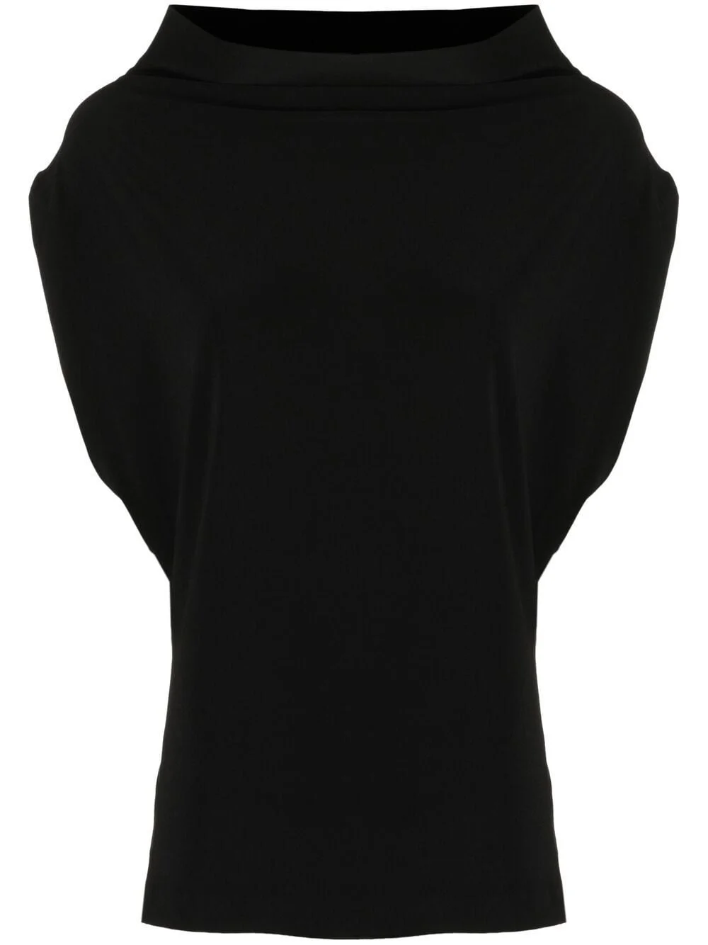 wide-neck sleeveless top black wide neck short sleeves straight hem Imported Composition Polyester 95%, Elastane 5% SIZE & FIT Measurement LENGTH 21.49 in(54.6 cm) WAIST 32.99 in(83.8 cm) BUST 37.99 in(96.5 cm) Washing instructions Hand Wash