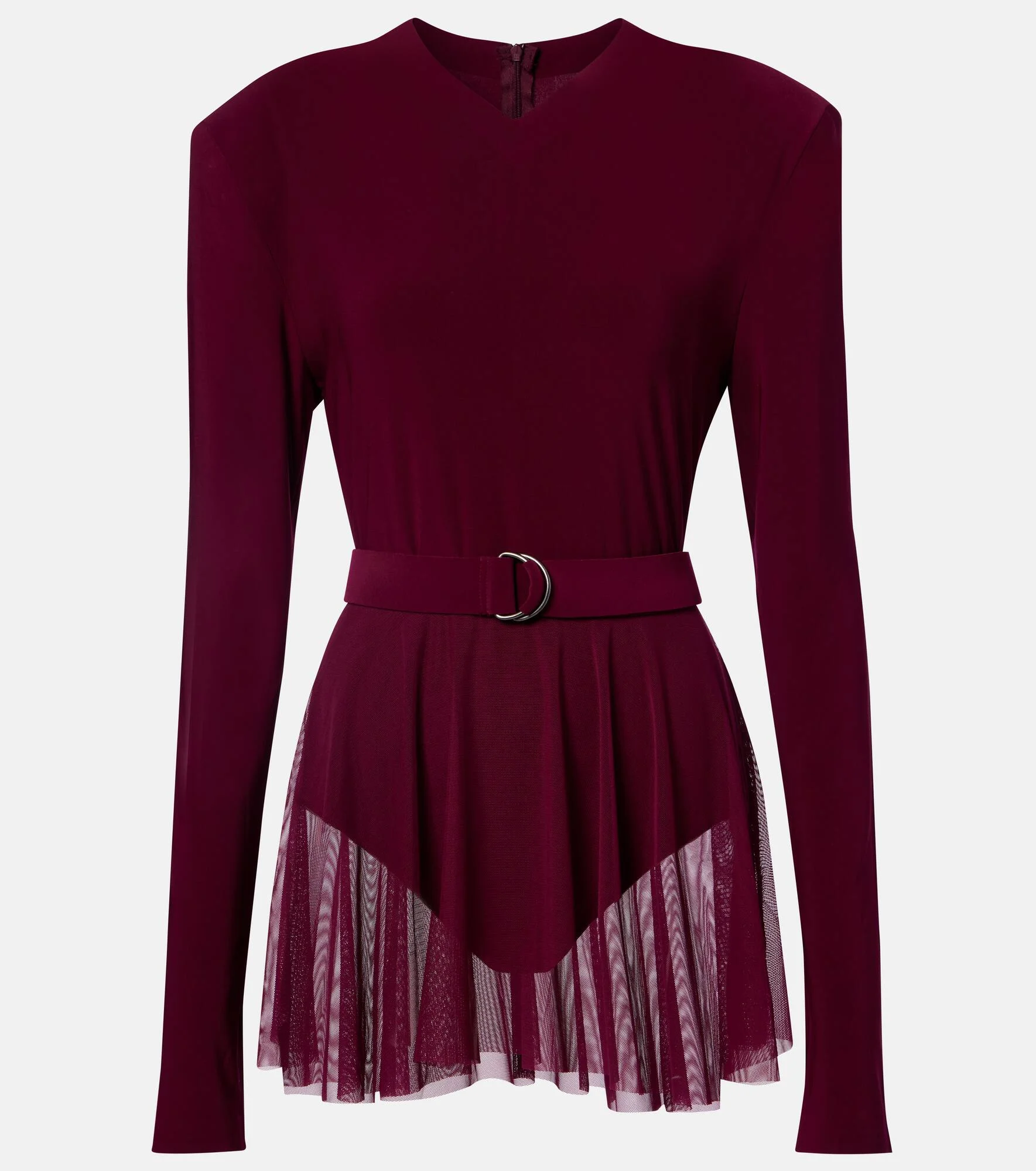 Award-winning designer Norma Kamali's playful approach to design has taken the world by storm since the 1960s. Rendered in a deep plum hue, this long-sleeved bodysuit features a sheer lower panel and a D-ring belt at the waist. Product Details - Material: 95% polyester, 5% elastane - Care instructions: machine wash cold - Made in China - Color: purple - Designer color name: Plum - Item color: purple - Trim: 82% nylon, 18% elastane - Closure: concealed zipped back - Detachable belt - Shoulder pads - Item number: P01127747 Size & Fit - True to size - Shoulder pad inserts - Cinched waist - Stretchy fabric - Medium-cut leg - The model seen in the picture is 178cm-5'10" and wearing a size XS