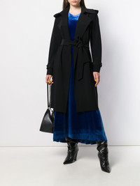belted trench coat Black belted trench coat from Norma Kamali featuring a classic collar, long sleeves, a belted waist, a mid-length and a slim fit. Imported Composition Polyester 95%, Spandex/Elastane 5% SIZE & FIT Model measurements Height 5 ft 10 in(1.77 m) Bust/Chest 31.88 in(81 cm) Hips 35.43 in(90 cm) Waist 24.8 in(63 cm) FittingInformation This piece fits true to size. We recommend you get your regular size Cut for a loose fit Made with a mid-weight stretch fabric Washing instructions Hand Wash