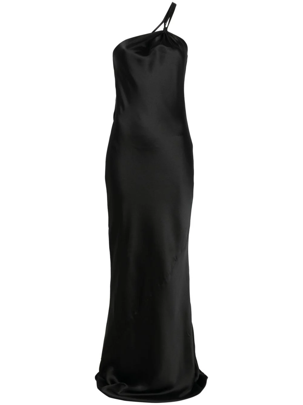 bias-cut one-shoulder gown Highlights - Black - Satin weave - Bias cut - One-shoulder - Fishtail design - Sleeveless - Draped cowl back - Full lining - Curved hem - Floor-length Imported Composition Outer: Polyester 100% Lining: Polyester 100% SIZE & FIT Model measurements Height 5 ft 11 in(1.8 m) Bust/Chest 33.07 in(84 cm) Hips 37.4 in(95 cm) Waist 25.19 in(64 cm) FittingInformation Designed for a slim fit that sits just away from the body offering a close yet comfortable fit Made from a midweight non-stretch fabric Washing instructions Hand Wash