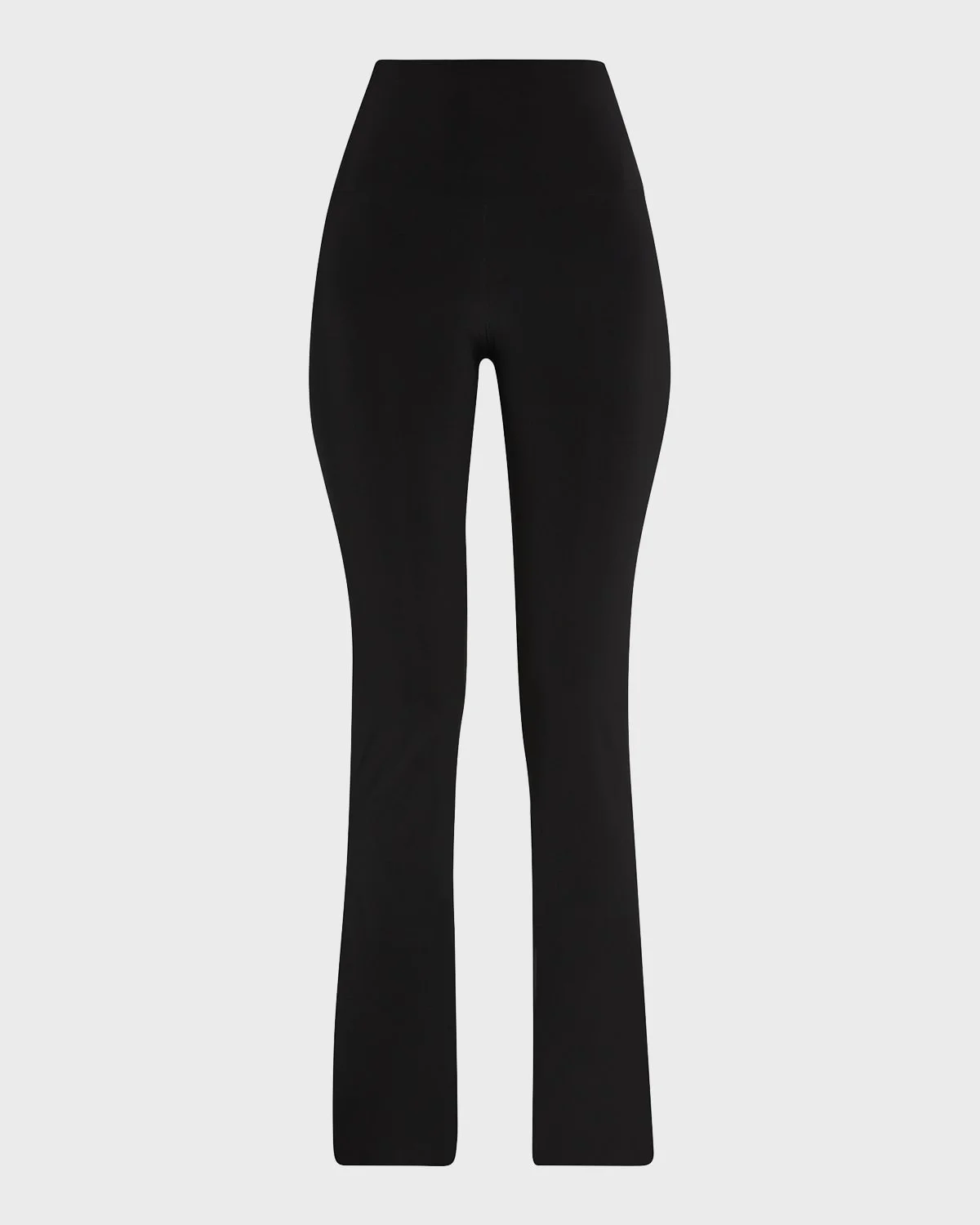 Norma Kamali stretch-knit activewear pants.Wide elastic band sits high above natural waist.Fitted through thighs; flared from knees.Full length.Pull-on style.Polyester/spandex.Imported.