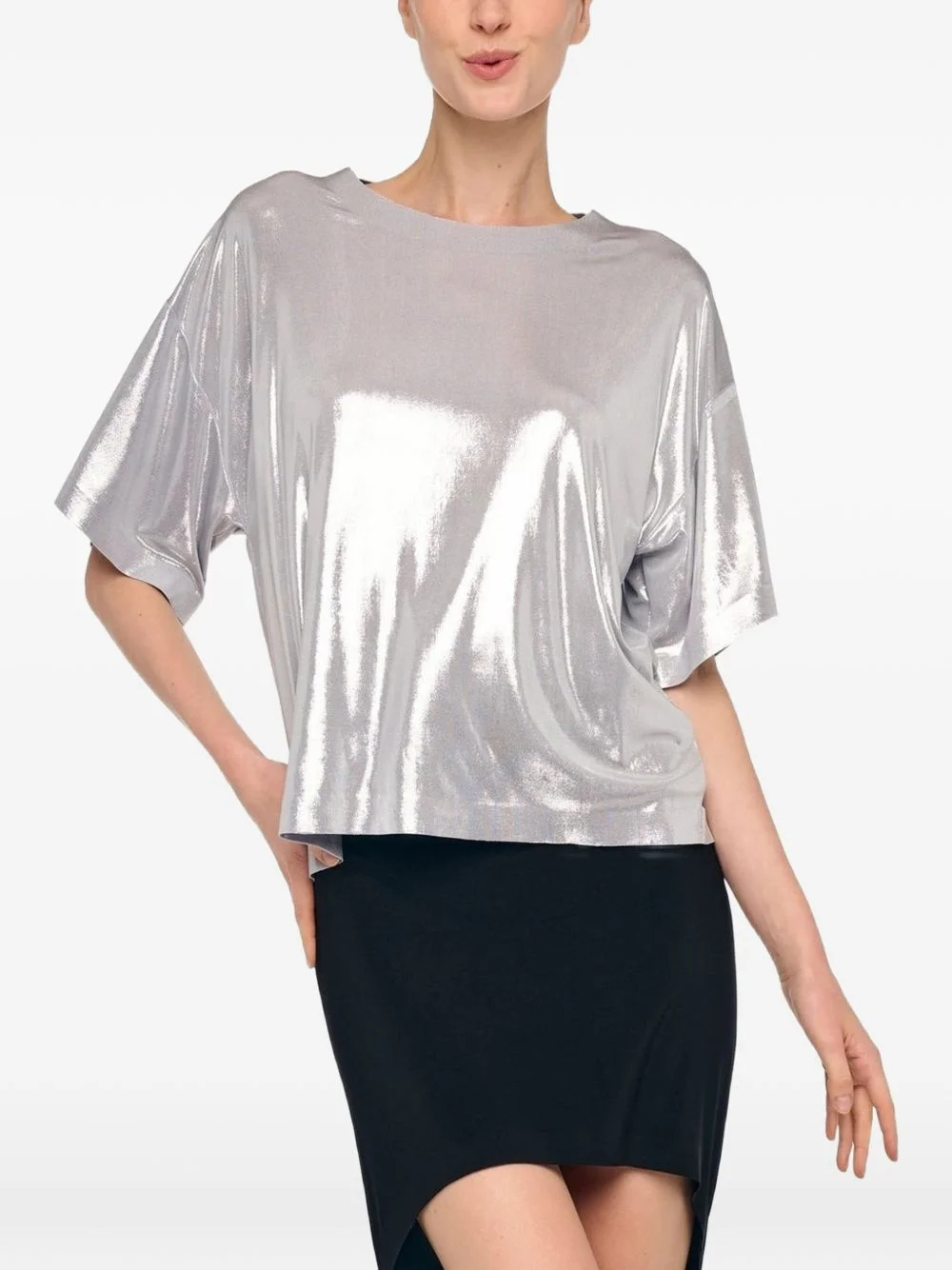boxy short-sleeve T-shirt Highlights - Silver-tone - Short sleeves - Boxy fit Imported Composition Polyester 95%, Elastane 5% Washing instructions Hand Wash