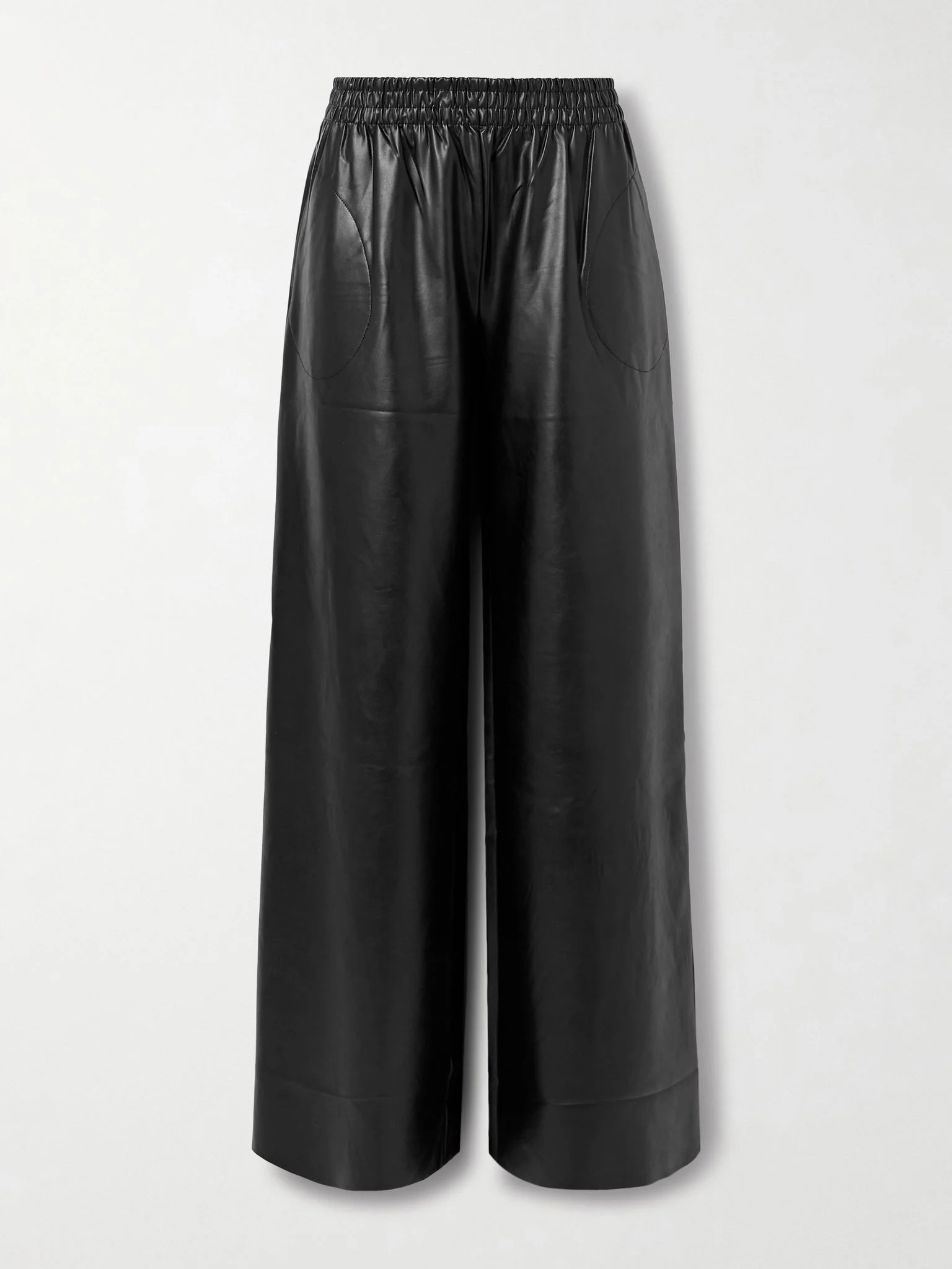 Made from glossy synthetic fabric, Norma Kamali's 'Elephant' pants have an elasticated high waist and dramatic wide-leg shape. Wear yours with a bralette and barely-there heels. Size & Fit - Fits true to size, however those who are between sizes should take the smaller size - High-rise, cut for a wide-leg fit - Elasticated at the waist for a comfortable fit - Mid-weight, non-stretchy material - Model is 180cm/ 5'11" and is wearing a size X-Small Details & Care - Black synthetic material - Pull on - 100% polyurethane; lining: 95% polyester, 5% spandex - Machine wash