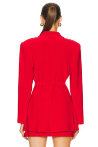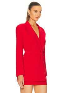 Details - 95% polyester, 5% spandex - Made in China - Machine wash - Surplice styling with velcro closure - Padded shoulders - Ponte fabric with adjustable waist belt - Our Style No. NOMF-WO62 - Manufacturer Style No. KK4234PLB80946