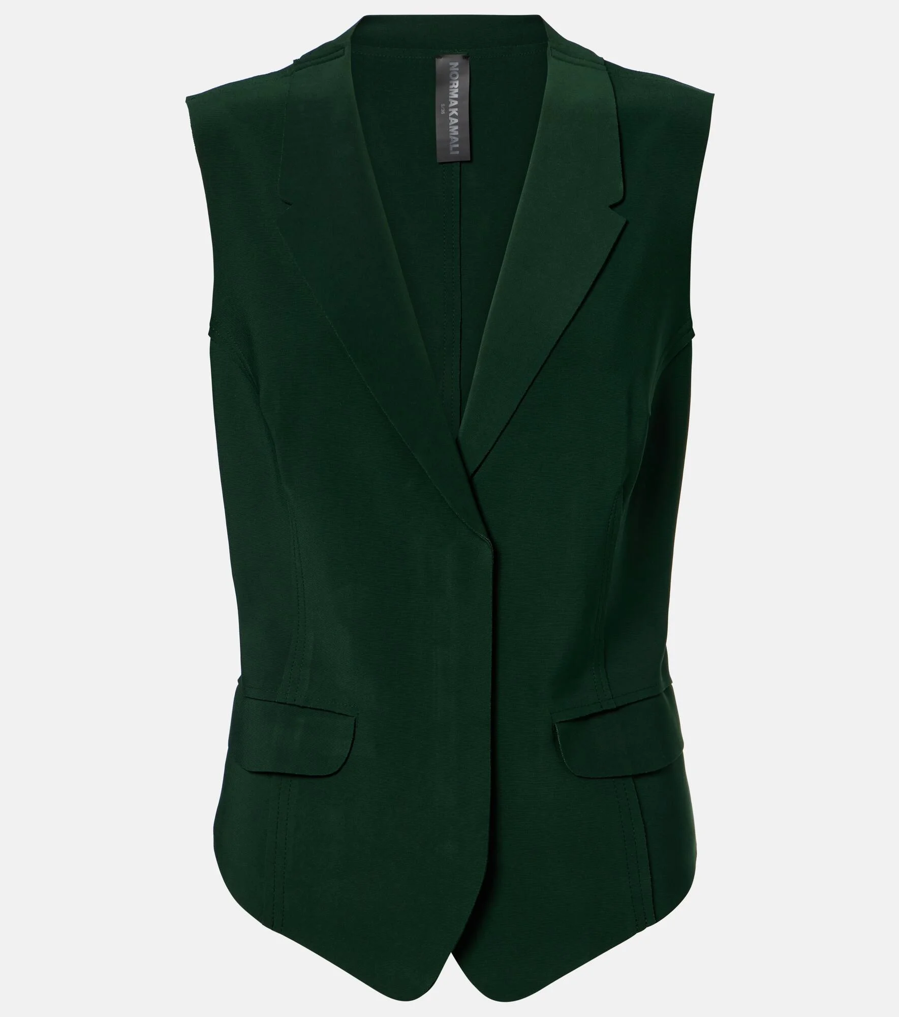 Norma Kamali's playful approach to design has taken the world by storm since the 1960s. Rendered in emerald green-hued crepe, this vest features a deep V-neckline with concealed zipped front closure. Product Details - Material: 95% polyester, 5% elastane - Care instructions: machine wash cold - Made in China - Color: green - Designer color name: Dark Emerald - Item color: green - Collar: V-neck - Closure: concealed zipped front - Item number: P01127753 Size & Fit - Fits large to size - we recommend trying one size smaller - Cinched waist - Stretchy fabric - Falls to the hip - The model seen in the picture is 178cm-5'10" and wearing a size XXS