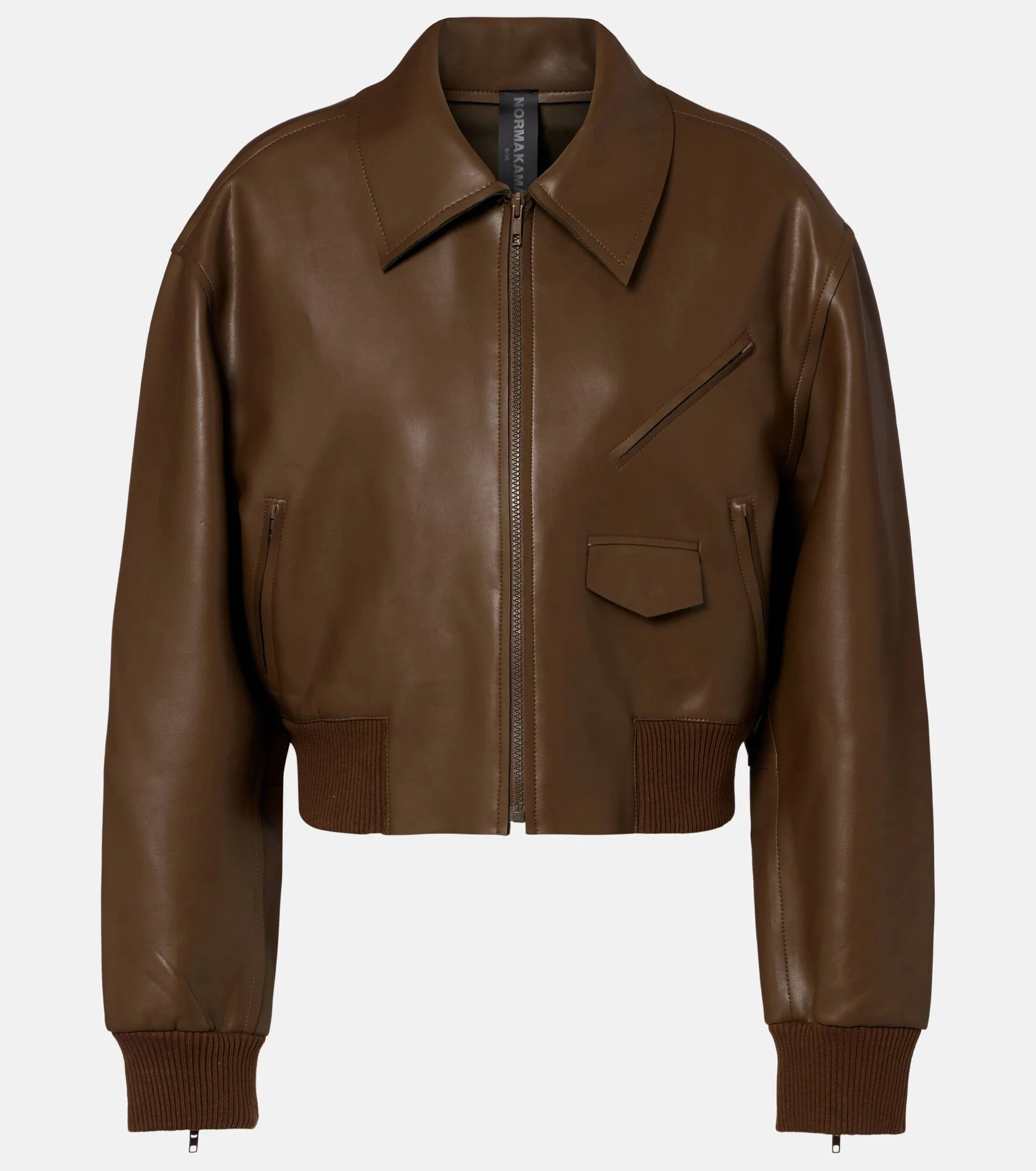 Award-winning designer Norma Kamali has been redefining playful design since the 1960s. Made from supple fabric, this jacket has a relaxed silhouette, a central zip-up closure and ribbed-knit trims. Product Details - Material: 100% polyurethane - Care instructions: hand wash - Made in China - Designer color name: Bark - Item color: brown - Lining: 95% polyester, 5% elastane - Trim: 95% polyester, 5% elastane - Closure: zipped front - Pockets: zipped pockets - Cuff: ribbed - Hem: ribbed - Item number: P01098473 Size & Fit - True to size - Dropped shoulders - Designed for a loose fit - Elasticated hem - Non-stretchy fabric - Slightly cropped - The model seen in the picture is 178cm-5'10" and wearing a size XS