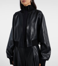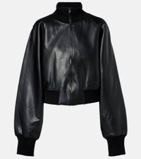 Award-winning designer Norma Kamali's playful approach to design has taken the world by storm since the 1960s. This cropped bomber jacket is cut from a smooth, polished material resembling leather and is finished with ribbed trims. Product Details - Material: 100% polyurethane - Care instructions: hand wash cold - Made in China - Designer color name: Black - Item color: black - Material II: 95% polyester, 5% elastane - Material III: 95% polyester, 5% elastane - Cuff: ribbed - Closure: zipped front - Hem: ribbed - Item number: P01112307 Size & Fit - True to size - Straight fit - Elasticated hem - Slightly stretchy fabric - Slightly cropped - The model seen in the picture is 178cm-5'10" and wearing a size XS