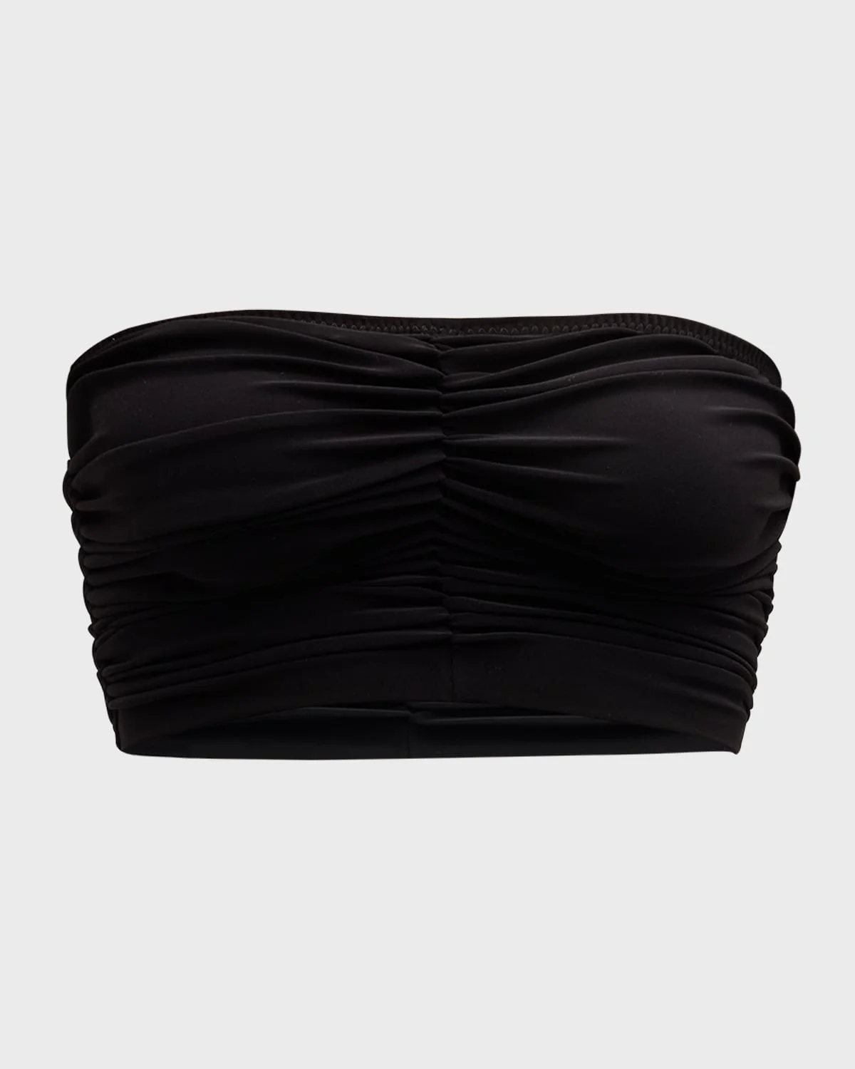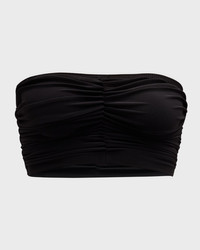 - Norma Kamali bikini top with ruching. - Bandeau neckline. - Pullover style. - Polyester/spandex. - Hand wash. - Imported. - Bottoms sold separately.