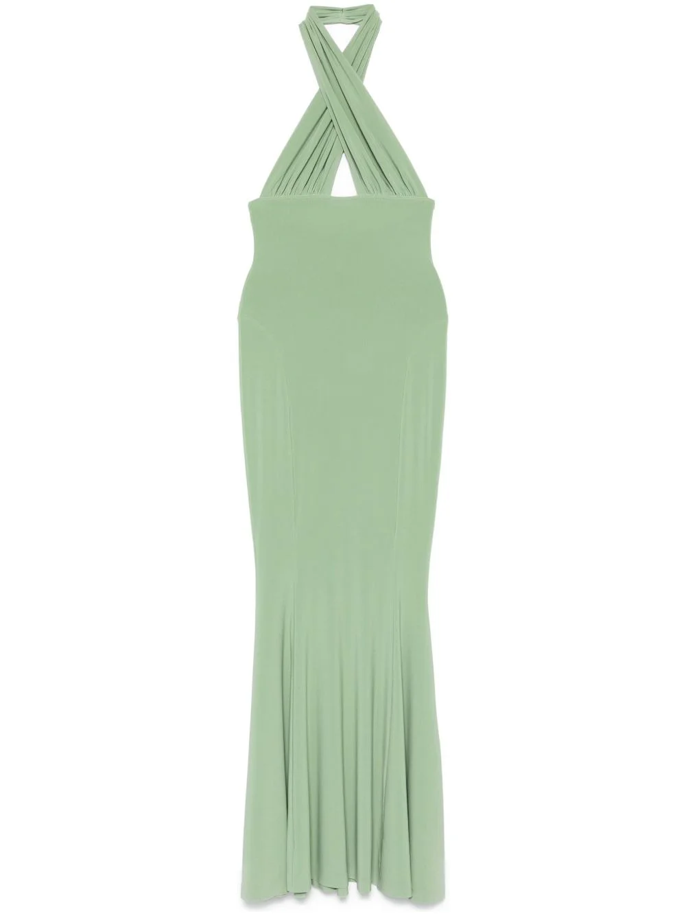 cross-halter fishtail gown Highlights - Light green - Partial lining - Sleeveless - Open back Imported Composition Polyester 95%, Spandex/Elastane 5% SIZE & FIT Model measurements Height 5 ft 10 in(1.78 m) Bust/Chest 33.46 in(85 cm) Hips 36.22 in(92 cm) Waist 23.22 in(59 cm) FittingInformation Designed for a close fit throughout Made from a midweight stretch fabric, this piece offers elasticity and flexibility when worn Washing instructions Machine Wash