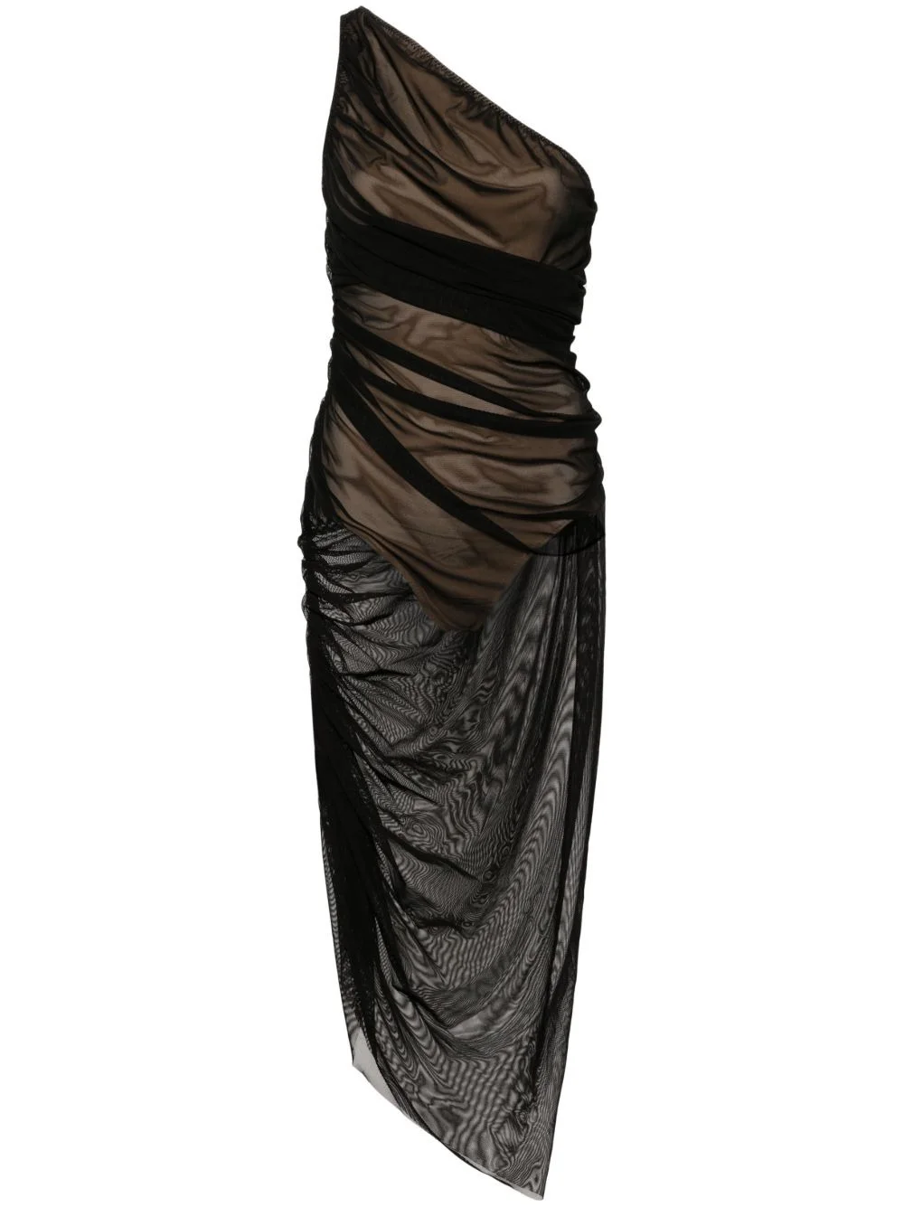 Diana one-shoulder gown Highlights - Black - Stretch-design - Mesh design - One-shoulder - Sleeveless - Ruched bodice - Straight hem - Long length Imported Composition Lining: Nylon 72%, Spandex/Elastane 28% Outer: Nylon 82%, Spandex/Elastane 18% SIZE & FIT Model measurements Height 5 ft 10 in(1.78 m) Bust/Chest 33.07 in(84 cm) Hips 36.61 in(93 cm) Waist 24.8 in(63 cm) Measurement HIPS 26.77 in(68 cm) WAIST 25.19 in(64 cm) FittingInformation Designed for a close fit throughout Made from a lightweight stretch fabric, this piece offers elasticity and flexibility when worn This piece fits true to size – take your usual size Washing instructions Dry Clean Only