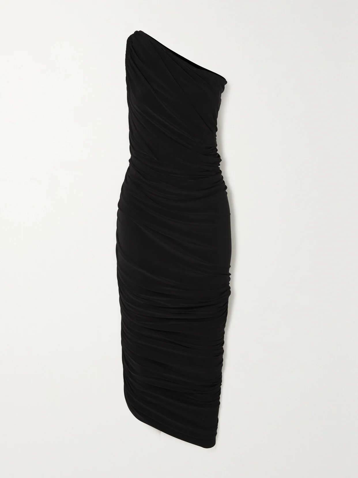 Alessandra Ambrosio stunned in the white version of Norma Kamali's 'Diana' dress. Now available in black, it's made from soft stretch-jersey that's ruched and really comfortable. Underpin the one-shoulder cut with a strapless bra from our lingerie edit.