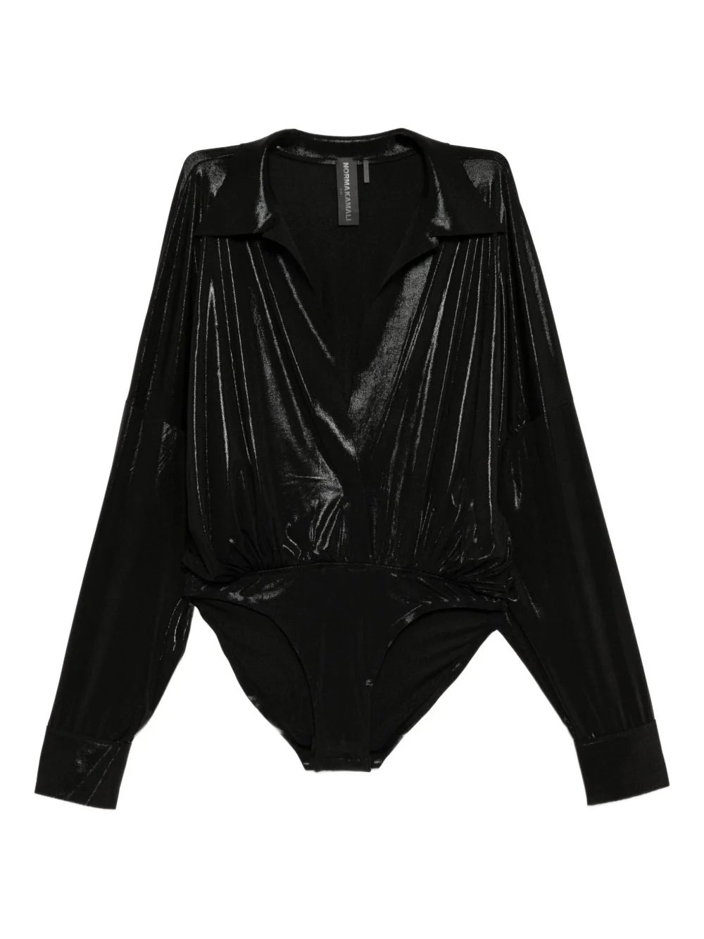 draped bodysuit Highlights - Black - Touch-strap fastening - Buttoned-cuff sleeves - Just a reminder that this piece must be tried on over your own garments. Imported Composition Polyester 95%, Spandex/Elastane 5% SIZE & FIT Model measurements Height 5 ft 10 in(1.77 m) Bust/Chest 30.31 in(77 cm) Hips 34.25 in(87 cm) Waist 25.19 in(64 cm) FittingInformation Designed to be unstructured, offering a loose fit throughout Made from a midweight stretch fabric, this piece offers elasticity and flexibility when worn Washing instructions Hand Wash