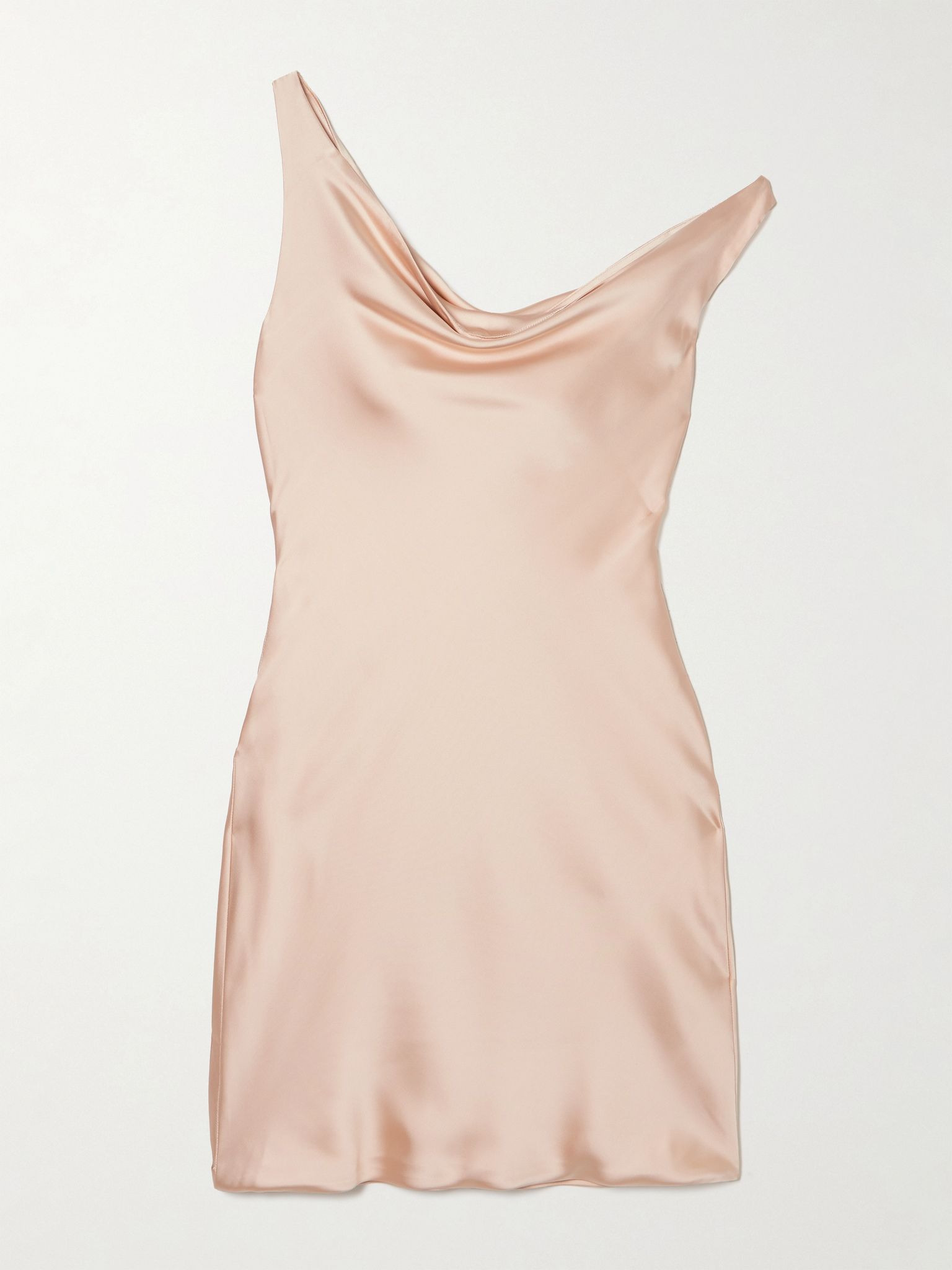 Few styles have the same appeal as a slinky slip dress. Norma Kamali's 'Maria' version is made from fluid satin that's beautifully draped to create a off-the-shoulder cowl neckline and has a hidden weight at the front and back to ensure it remains in place as you move. Wear yours with heeled sandals. Size & Fit - Fits true to size, take your normal size - Cut for a slim fit - Lightweight, non-stretchy fabric - Model is 177cm/ 5'10" and is wearing a size X Small Model measurements: - Bust: 85cm/ 33” - Waist: 66cm/ 26” - Hip: 92cm/ 36” Details & Care - Blush satin - Slips on - 100% polyester - Hand wash - Designer color: Baby