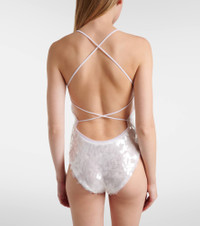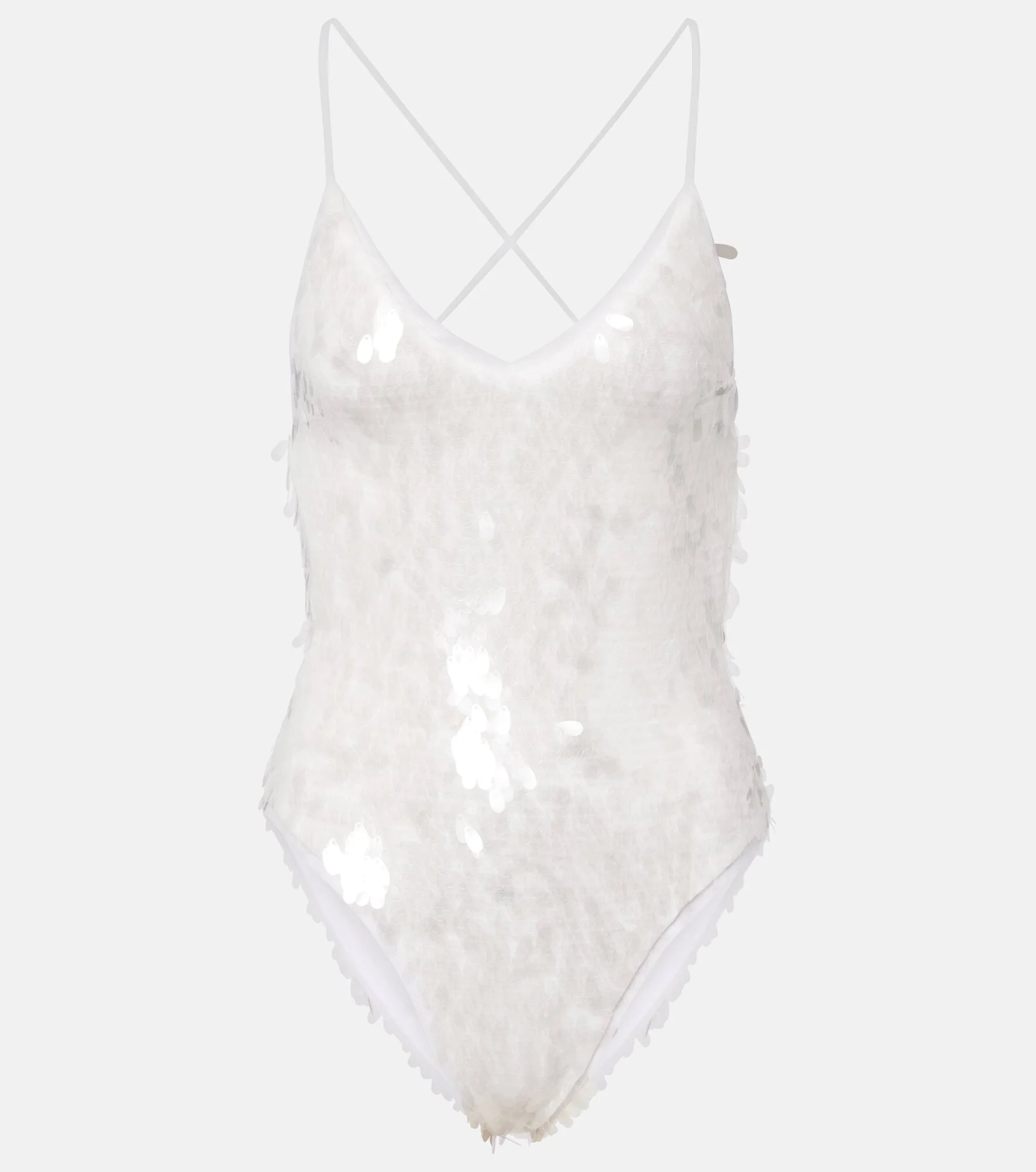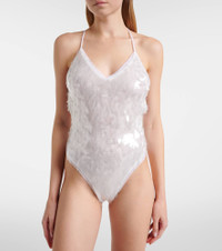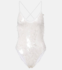 Award-winning designer Norma Kamali's playful approach to design has taken the world by storm since the 1960s. Made from semi-sheer mesh, the Fara bodysuit features an open back with criss-cross strap details and all-over sequin embellishments. Product Details - Material: 88% nylon, 12% elastane - Care instructions: hand wash cold - Made in China - Designer color name: Clear/White - Item color: white - Lining: 82% nylon, 18% elastane - Item number: P01124256 Size & Fit - Fits small to size - we recommend trying one size larger - Low back - Semi-sheer - Fitted - Slightly stretchy fabric - Medium-cut leg - The model seen in the picture is 178cm-5'10" and wearing a size S