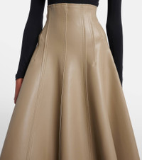 Award-winning designer Norma Kamali's playful approach to design has taken the world by storm since the 1960s. This flared midi skirt features elegant topstitching and a discreet zip closure. Product Details - Material: 100% polyurethane - Care instructions: hand wash cold - Made in China - Designer color name: Elm - Item color: beige - Material II: 95% polyester, 5% elastane - Material III: 95% polyester, 5% elastane - Closure: concealed zipped back - Item number: P01113781 Size & Fit - True to size - Slightly stretchy fabric - High-waisted - The model seen in the picture is 178cm-5'10" and wearing a size XS