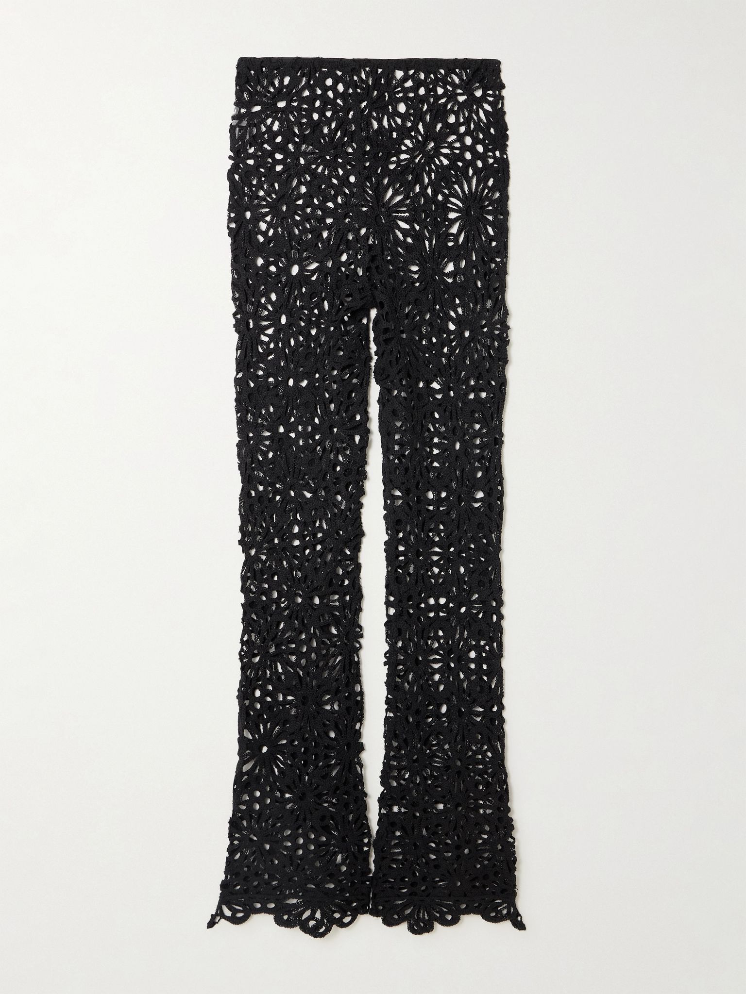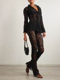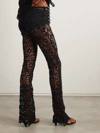Norma Kamali's pants are made from cotton-blend in an open-knit construction, leaving them fully see-through - underpin yours with tonal briefs or a swimsuit. They have an elasticated high waist and flared legs. Size & Fit - Fits true to size, take your normal size - Mid-rise, designed for a slim fit with a flared hem - Elasticated at the waist for a comfortable fit - Mid-weight, open knit - Model is 180cm/ 5'11" and is wearing a size XSmall Model measurements: - Bust: 80cm/ 31.5" - Waist: 65cm/ 25.5" - Hip: 89cm/ 35" Details & Care - Black cotton-blend - Pull on - 90% cotton, 10% nylon - Hand wash