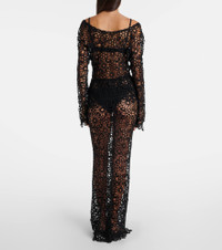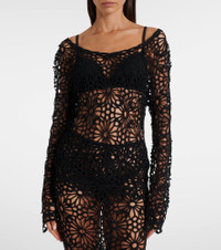 Off-shoulder cotton-blend crochet top