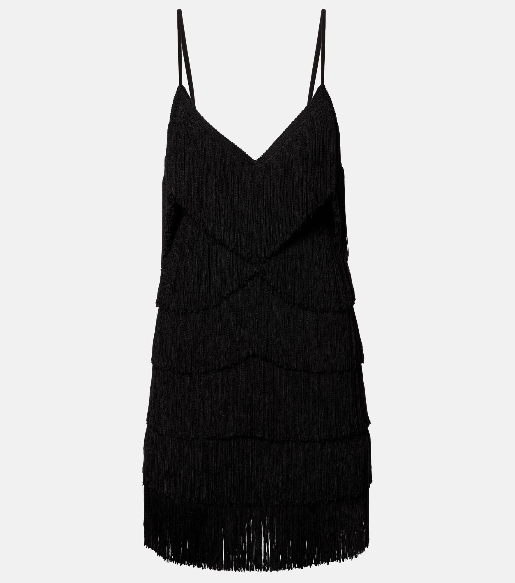 Award-winning designer Norma Kamali's playful approach to design has taken the world by storm since the 1960s. Inspired by the iconic flapper styles of the 1920s, this minidress is characterized by its tiers of fringes. Product Details - Material: 95% polyester, 5% elastane - Care instructions: hand wash cold - Made in China - Designer color name: Black - Item color: black - Trim: 100% rayon - Item number: P01124257 Size & Fit - True to size - Low back - Cinched waist - Slightly stretchy fabric - The model seen in the picture is 178cm-5'10" and wearing a size XS
